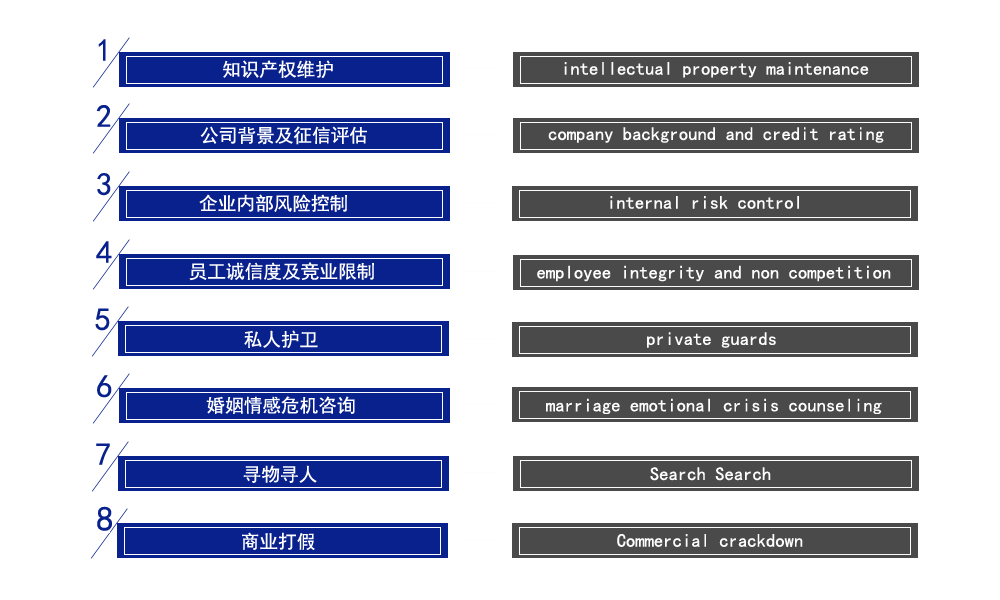 我司人员在长期的运作实践中,坚持着重自身全方位综合能力的发展,努力培养敏锐的洞察力和判断力,不断学习、创新,几年来已成为一支经验丰富,作风正派,技术力量雄厚的咨询团队,同时结合各种先进的高科技侦查设备,为客户创造了一流的服务质量。凭借自身的实力和咨询经验,公司立志成为中国商务咨询道路中的一支强兵。